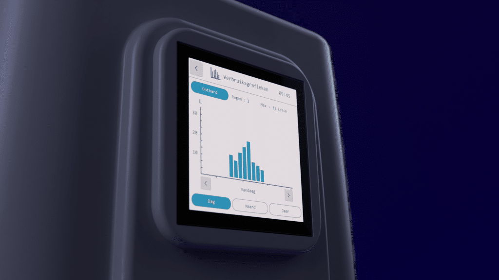 Voorzien van een afneembaar bedieningspaneel (3,5″) dat je los kunt koppelen en bijvoorbeeld in de meterkast kunt plaatsen. Bedien en monitor de ontharder waar jij dat het handigst vindt.